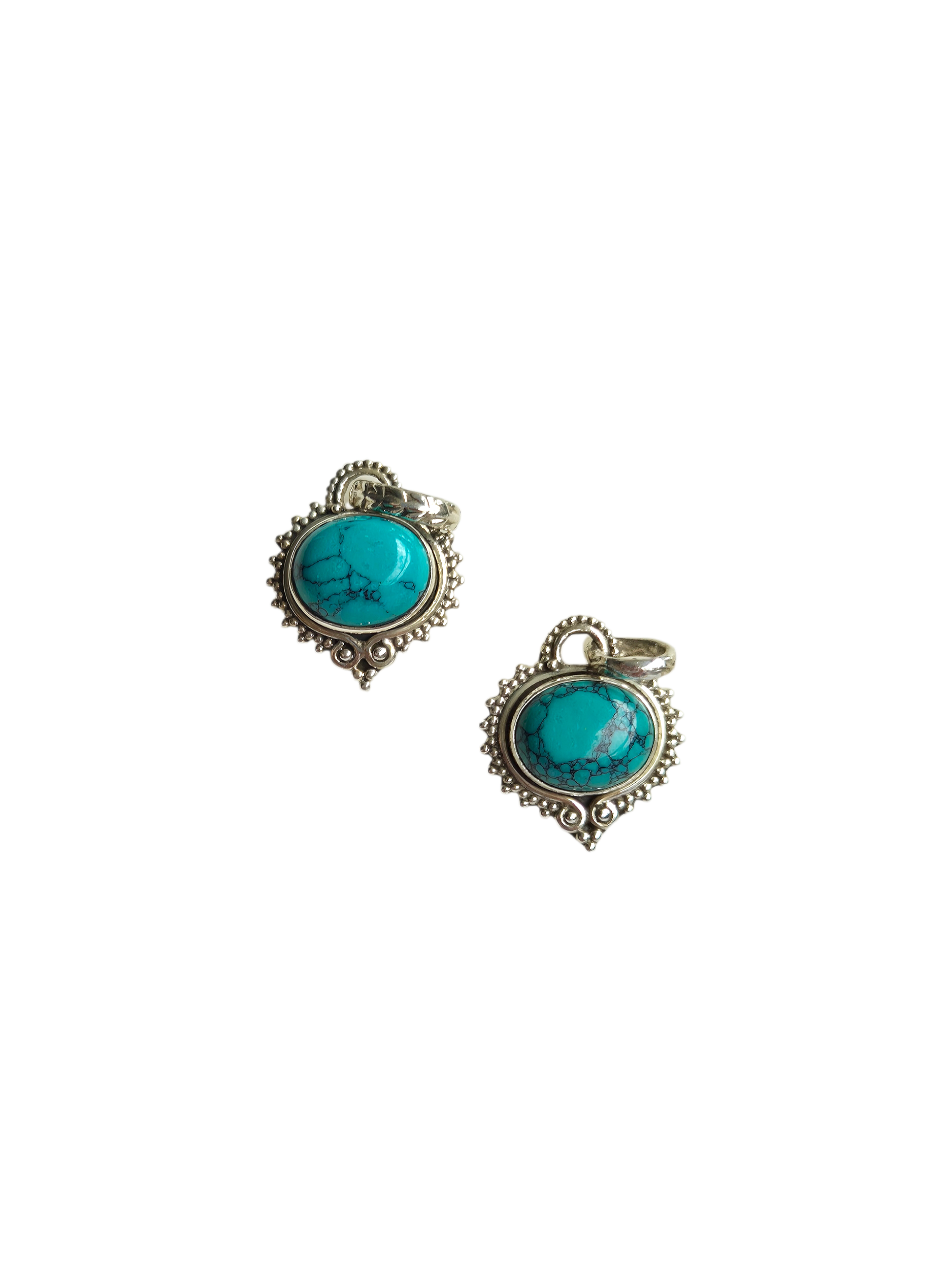 O design possui um trabalho delicado em prata ao redor da pedra, trazendo um toque elegante e levemente vintage — perfeito para usar sozinho ou em composição com outras peças. A Turquesa é tradicionalmente conhecida por promover proteção espiritual, equilíbrio emocional e comunicação autêntica, sendo ideal para quem deseja atrair calma, clareza e energia positiva no dia a dia.